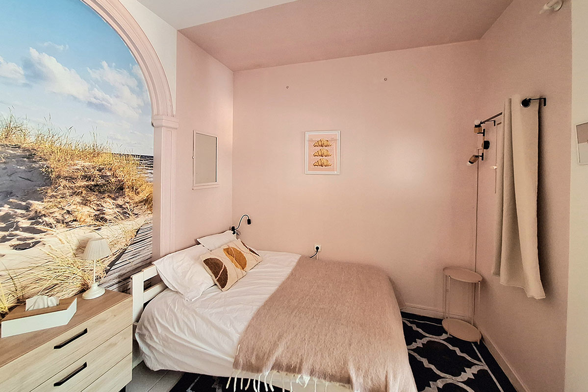 L'appartement Kiss de 37m2 situé en rez-de-chaussée, il est adapté aux personnes à mobilité réduite mais n’est pas encore classé PMR (Rebord de douche).
